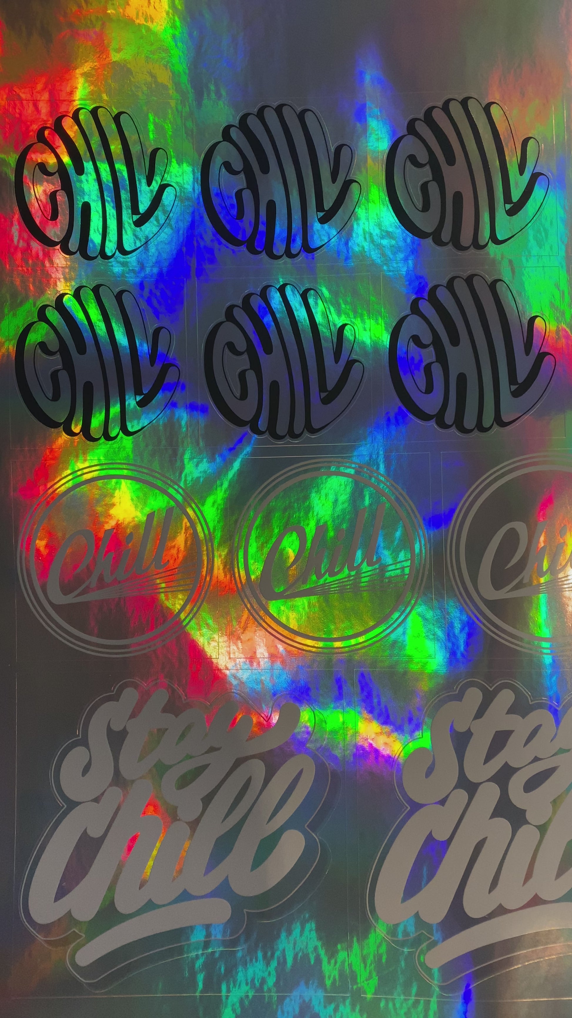 Izmērs 10x11 cm, ploterēta uz hologrāfiskās plēves.