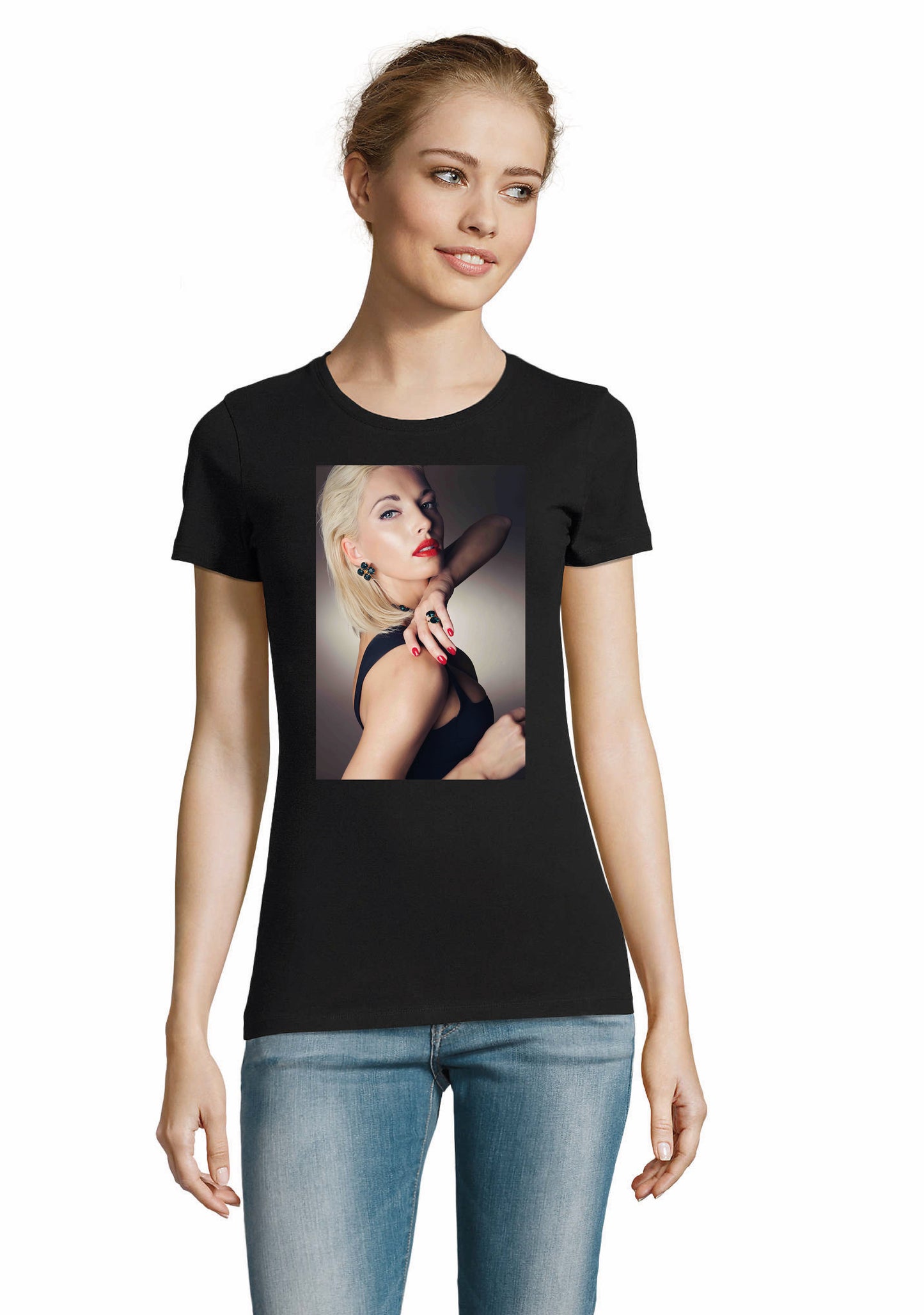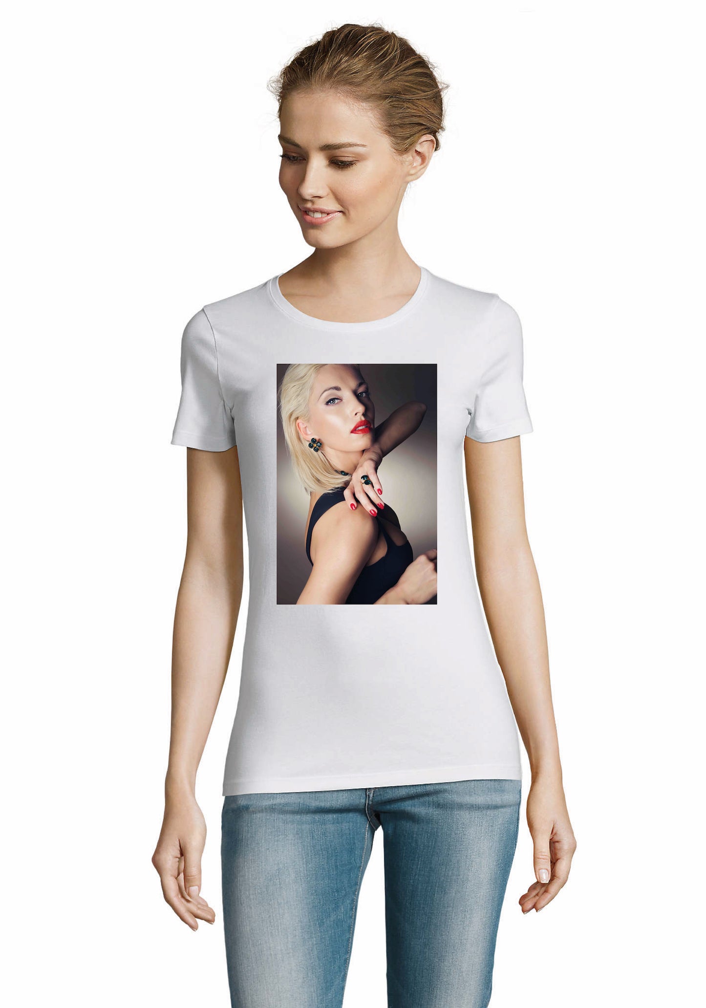 Pieguļoša piegriezuma sieviešu T–krekls ar apaļu kakla izgriezumu